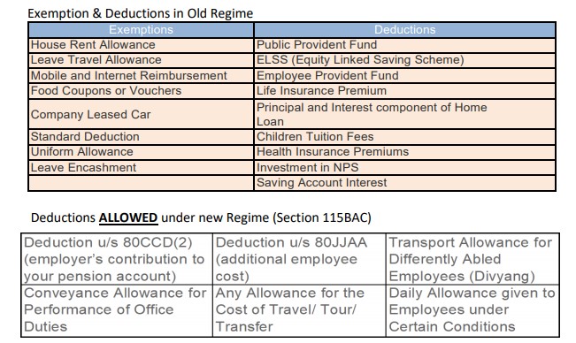 So, each one can calculate own exemptions and deductions list and then will arrive at the net taxable income. After arriving at net taxable income as per both regimes by applying tax slabs as per selected regime we will come to know the tax payable under both tax regimes and can choose the beneficial one.