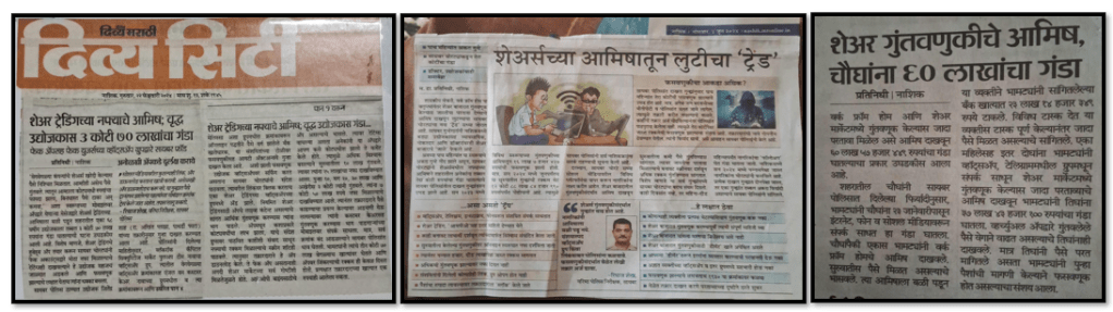शेअर ट्रेडिंग आणि सायबर फसवणुकीच्या घटनांपासून सुरक्षित राहण्यासाठी तथ्यहीन प्रलोभनांना बळी न पडणे आणि जागरूक राहून आपल्या आर्थिक माहितीची सुरक्षितता जपणे आपल्याच हातात आहे. तेव्हा सतर्क राहुयात !